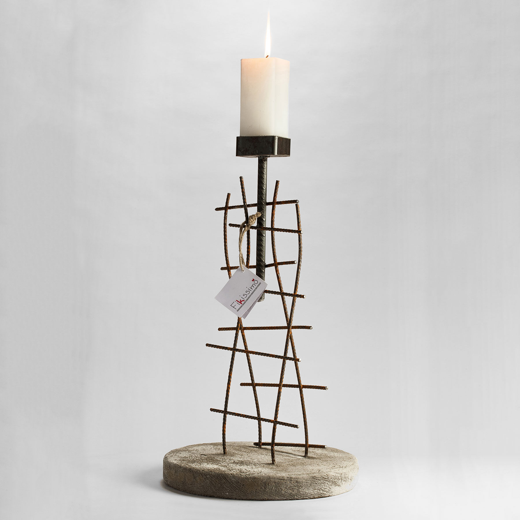 The candlestick RECOVER 1M can be perfectly placed on the table or to the floor and is characterized by its strong decorative impact. His style mixes with the quality of the materials, a composition made of cement and steel mesh.